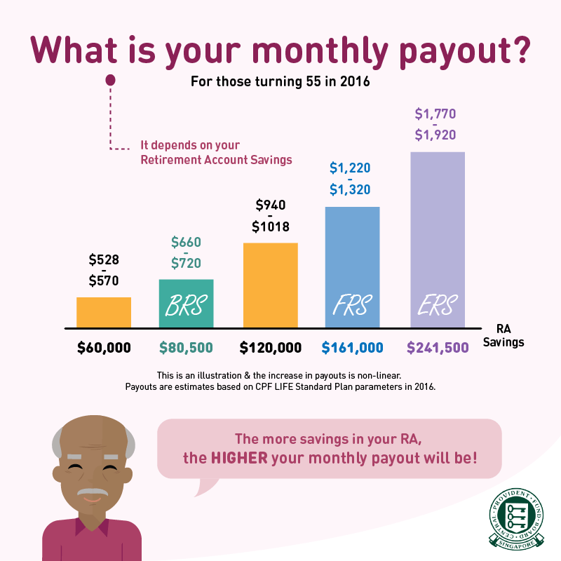 The monthly payouts for life from 65 is only $660 (assuming you have $80,500 in your Retirement Account at the age of 55). Of course, $660 can provide you three simple meals a day but beyond that, nothing more. I have not even touched on the bills and unforeseen healthcare needs that you cannot claim from Medisave.